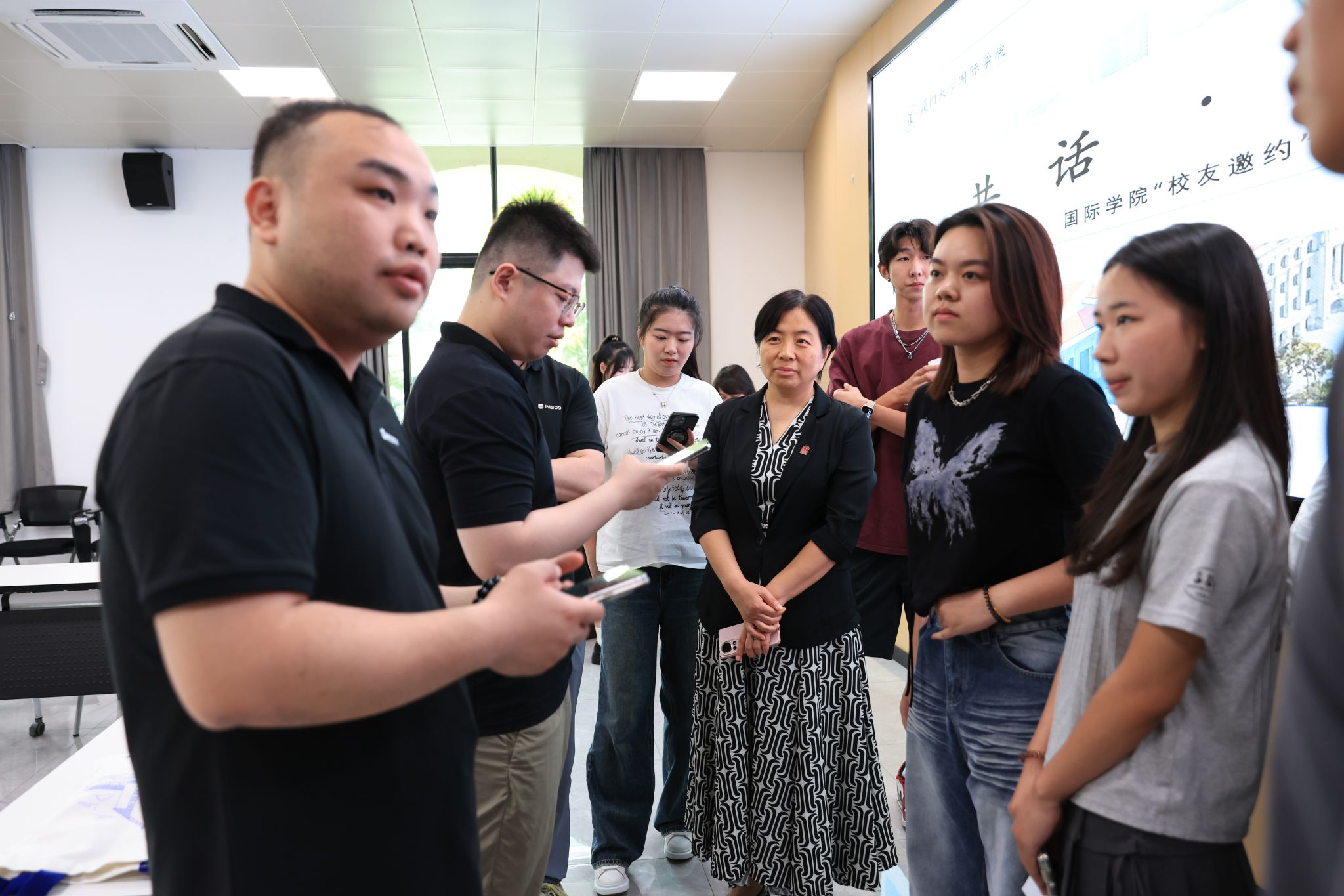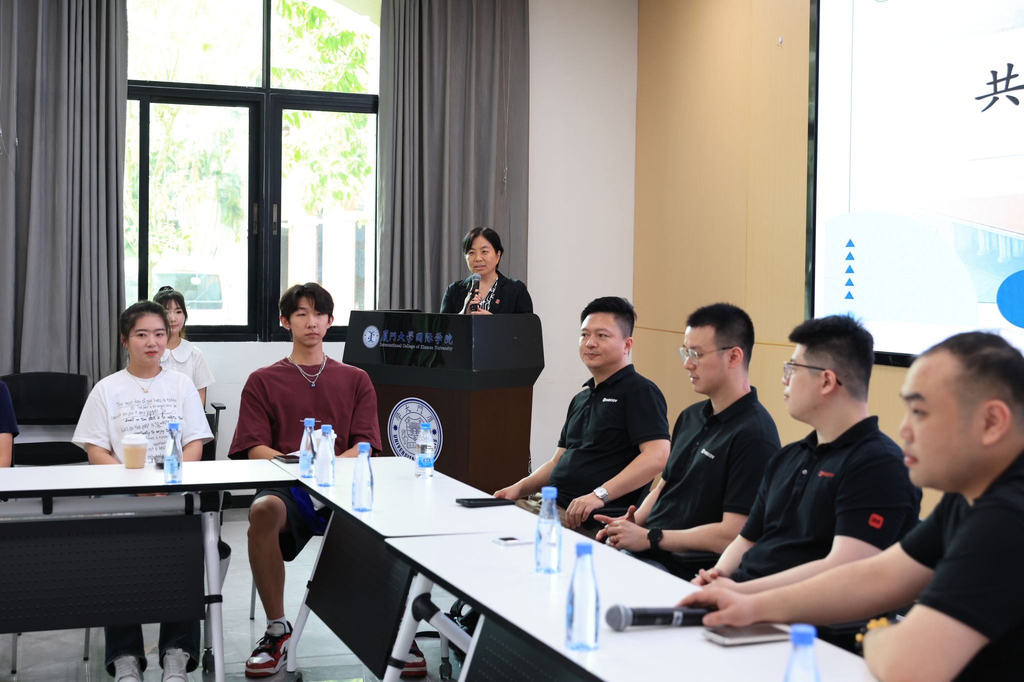 5月20日,国际学院共话·成长——“校友邀约”系列活动第六期在漳州校区4号楼101会议室举行。本次特邀学院2011级金融服务专业校友、数智引力(厦门)运动科技有限公司(以下简称数智引力)创始人兼总经理林承瑜, 2011级国际贸易专业校友、数智引力联合创始人兼副总经理林方舟,与学院学子面对面交流,共话成长与发展。
