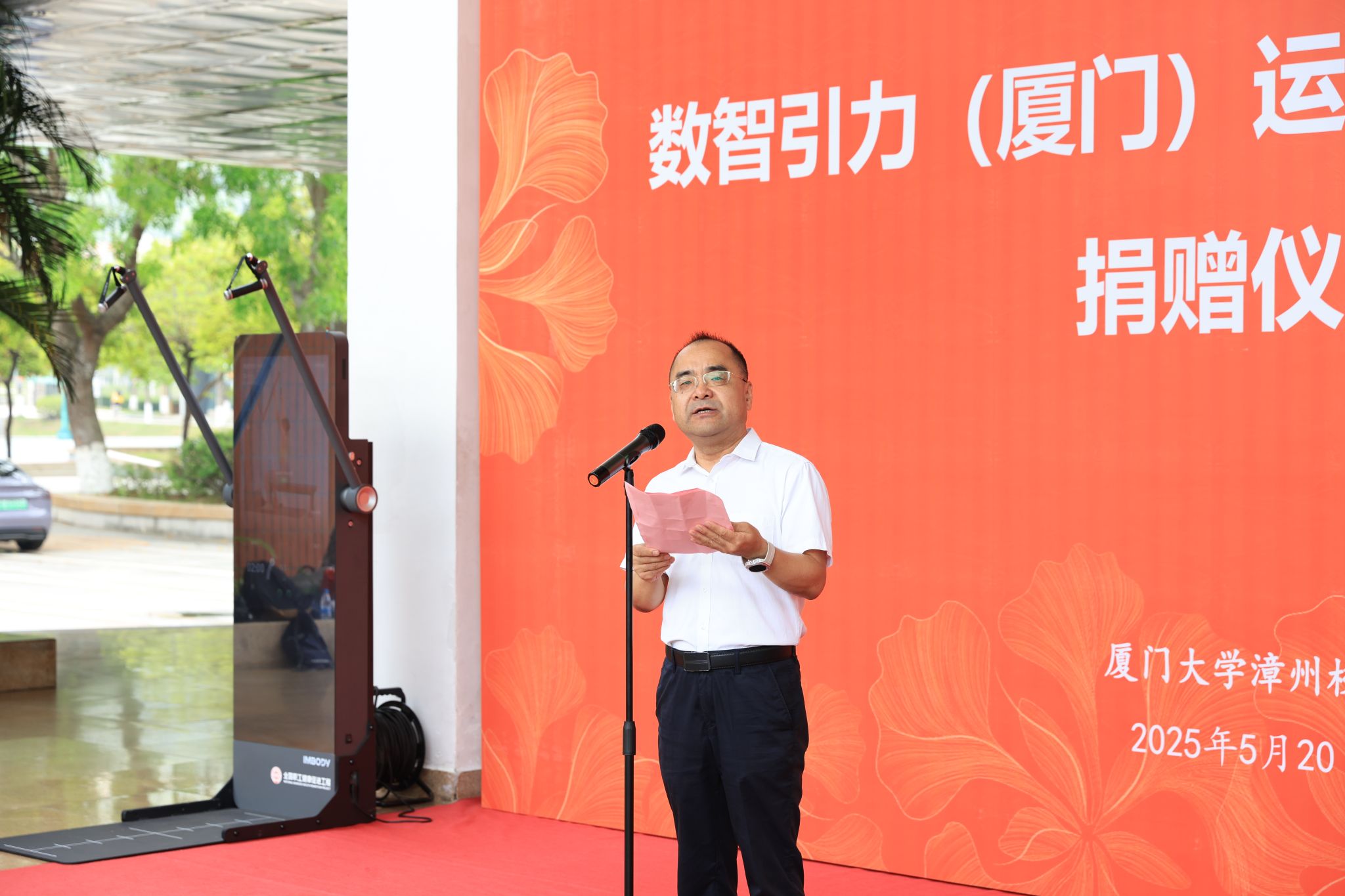 5月20日上午,数智引力(厦门)运动科技有限公司捐赠仪式在漳州校区风雨球馆举行。我校国际学院校友、数智引力公司董事长林承瑜、副总经理林方舟,数智引力公司副总经理马晨坤,校党委常委、漳州校区管委会主任、嘉庚学院党委常务副书记黎永强,国际学院院长陶涛,国际学院党委书记周蕾,校友总会副秘书长郑辉,教育发展基金会副秘书长徐滨,国际学院副院长张晓云,嘉庚学院体育教学部主任王惠,嘉庚学院资产与后勤管理部副部长沈涛,以及校区有关单位师生代表参加活动。仪式由漳州校区办公室主任何鸿鸣主持。
