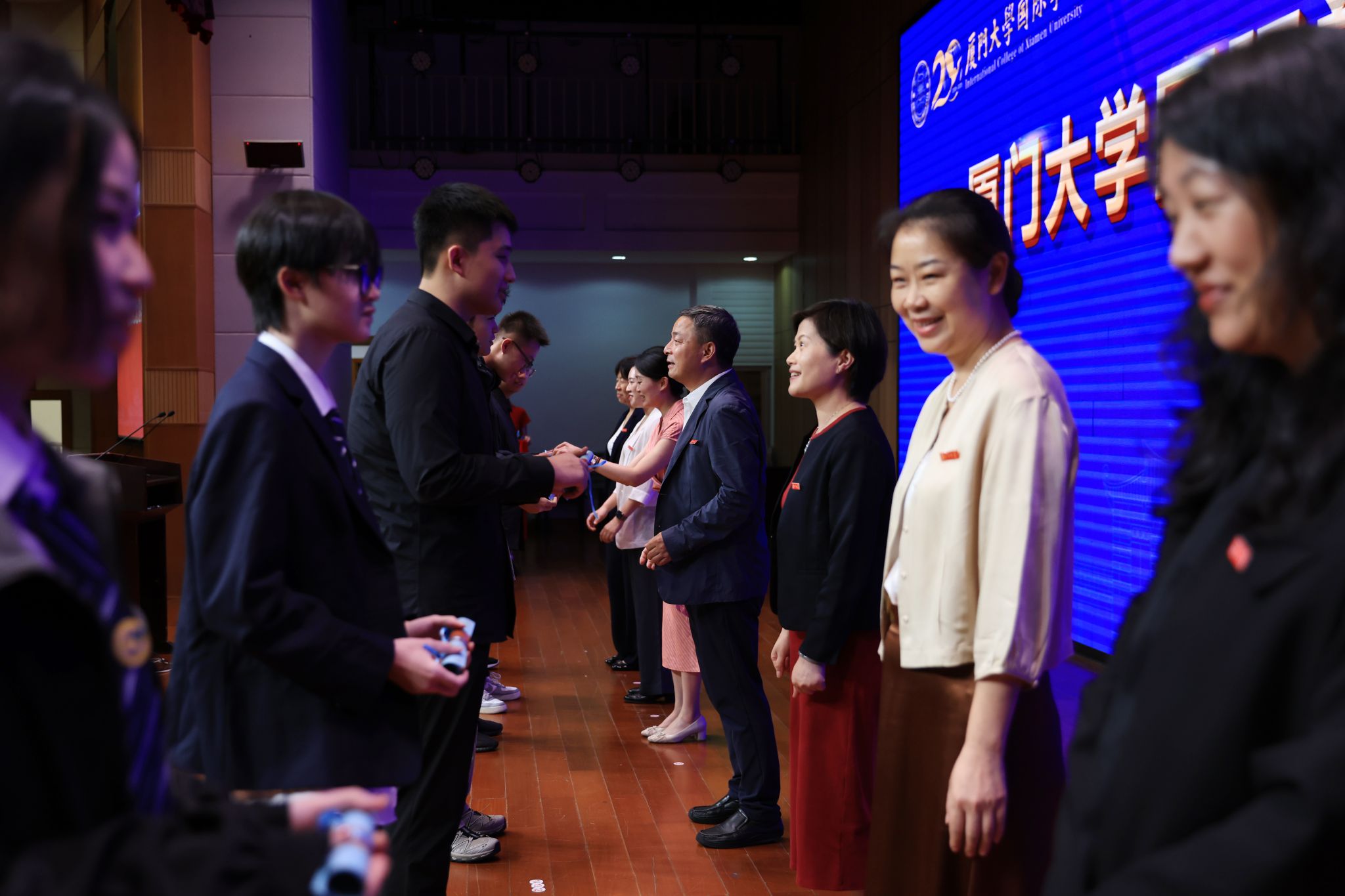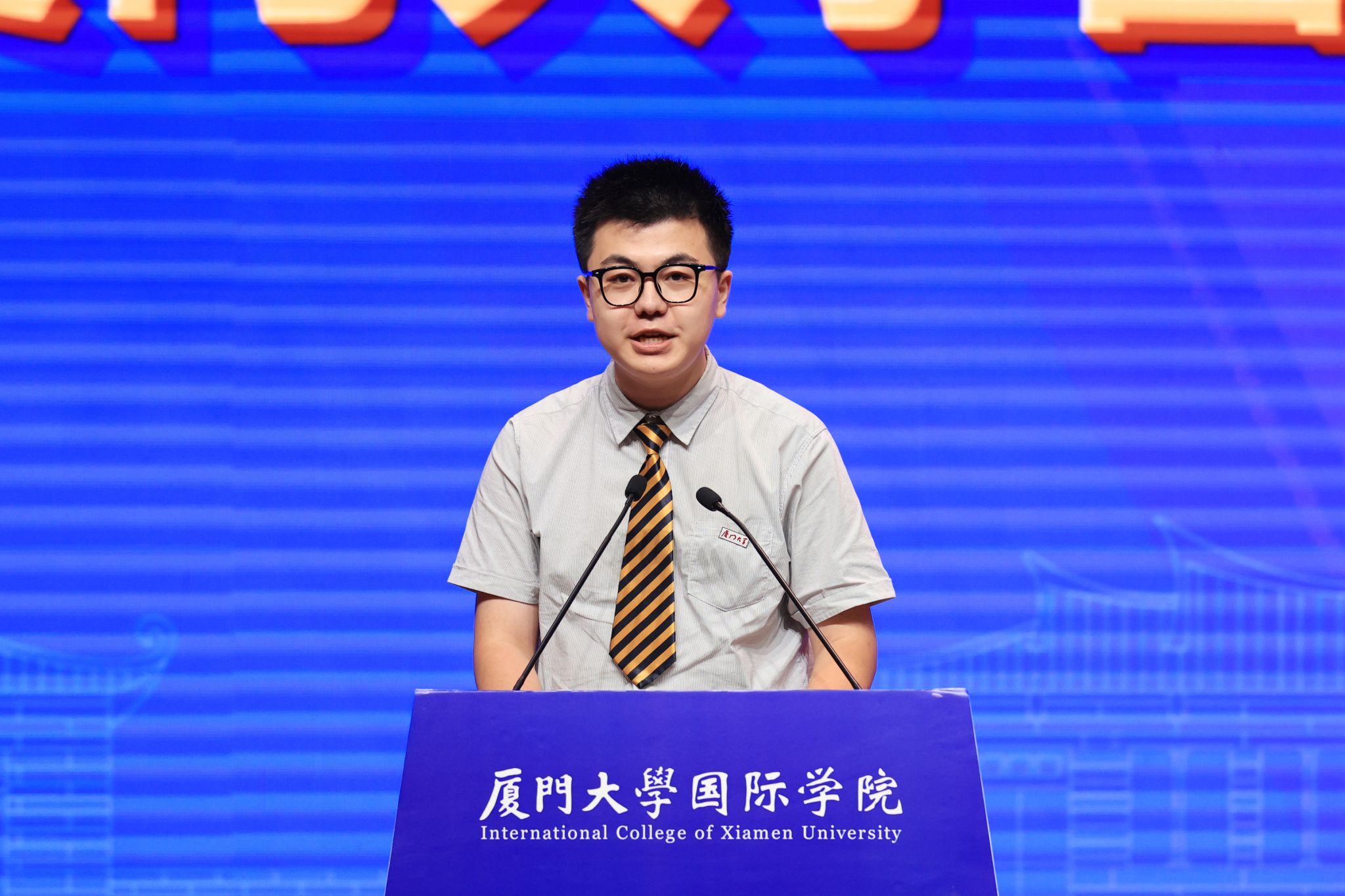 学生代表、2022级国际金融专业巩正同学动情回顾了在学院学习生活的点点滴滴,向辛勤付出、耐心传道授业解惑的老师们致以最衷心的感谢和最崇高的敬意。他表示,在国际学院学习期间,不仅掌握了扎实的专业知识,还不断提升了跨文化交流与适应能力。未来,他们将牢记厦门大学“自强不息,止于至善”的校训,在国际化舞台中踏浪前行、追逐梦想。