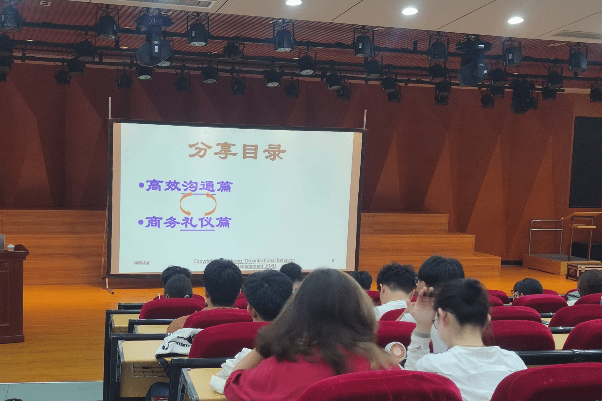 9月4日上午,学院邀请到厦大马克思主义学院佳宏伟副教授为同学们带来《民族复兴与抗日战争——习近平总书记关于抗日战争重要论述精神解读》,引导同学们传承和弘扬伟大抗战精神,让抗战精神在新时代绽放光芒。下午,学院诚邀厦大管理学院詹虹副教授讲授了《高效沟通与商务礼仪》,在沟通技巧与礼仪知识方面提升学生专业素养。