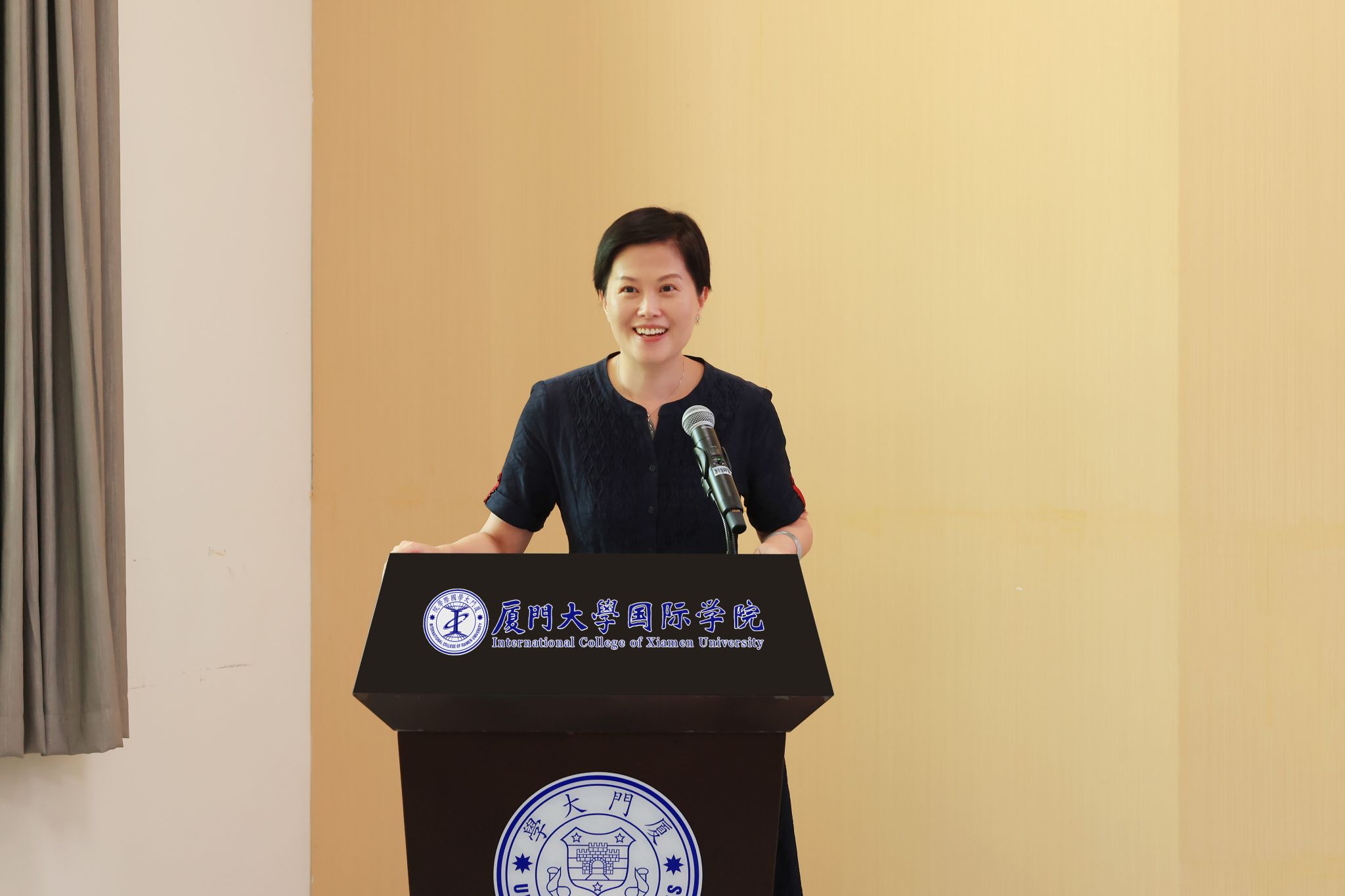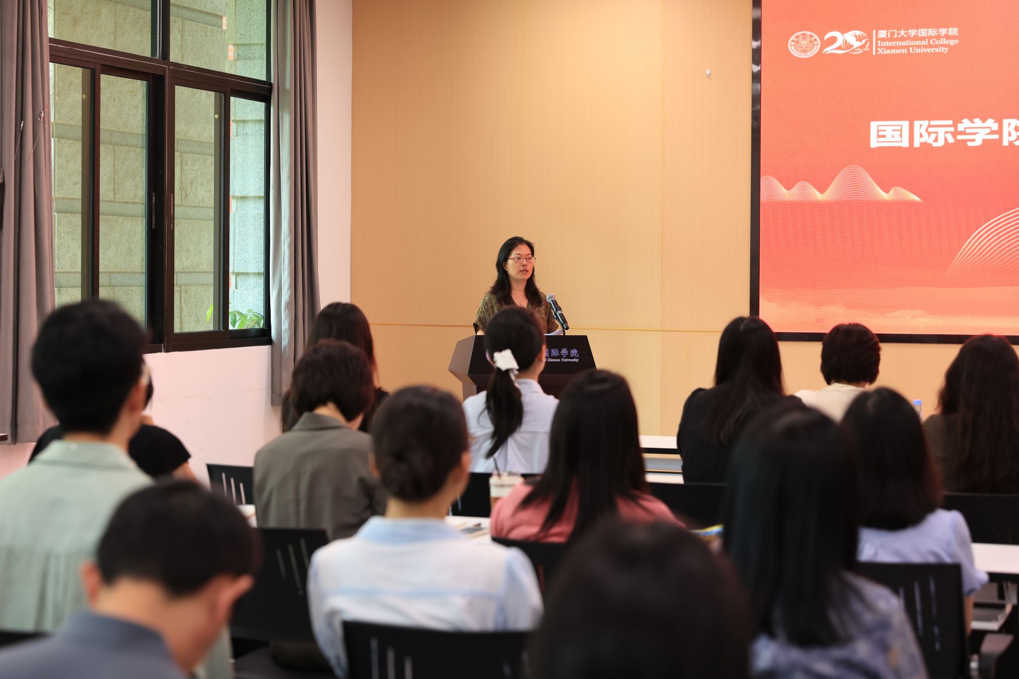会上,余宏波院长首先对上半年学院工作完成情况进行梳理及总结,并提出新学期工作计划及工作要求。她指出,上半年,在全体教职工的共同努力下,学院各项工作稳步开展:学院继续以教师教学比赛、课程考试成绩通过率为抓手,加强队伍建设,暑期派出多名教师参加教育部留学服务中心组织的多场培训,不断提升教学水平,多名教师荣获教学类奖项;学院坚持以生为本,提升人才培养质量,学生出国留学深造率不断提高,多名学生获得英国、澳大利亚、新加坡、日本等国各类奖学金,学院也首次为表现优秀的28名学生颁发奖学金及荣誉称号;学院注重学生全面发展,多名学生在校级、国家级等专业及文体竞赛中获得奖项;结合当前复杂多变的国内外环境,学院积极调整招生策略,突出厦门大学品牌效应,多措并举开展招生工作;加强联系校友,凝聚校友力量,稳步推进20周年院庆各项筹备工作;持续优化办学条件,提高师生满意度和幸福感。