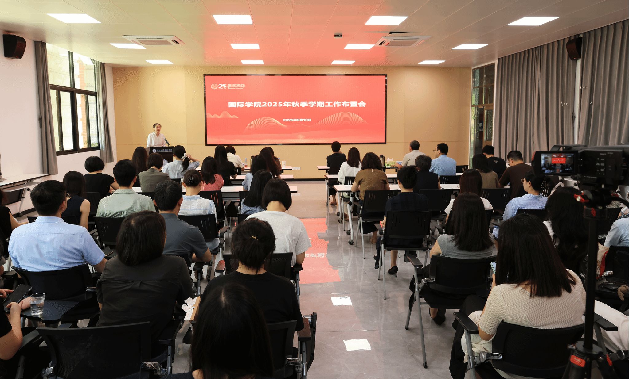9月10日中午,在第41个教师节到来之际,国际学院在漳州校区四号楼101会议室召开2025年秋季学期工作布置会。学院党政领导班子及全体教职工欢聚一堂,共话学院建设与发展。会议由张晓云副院长主持。