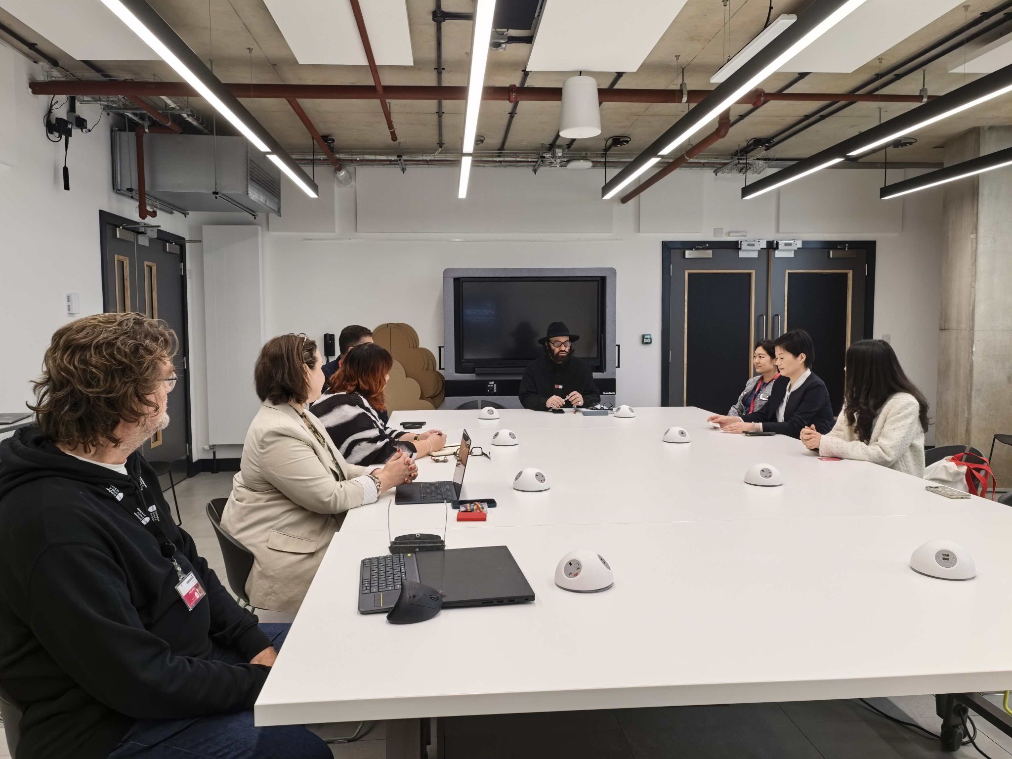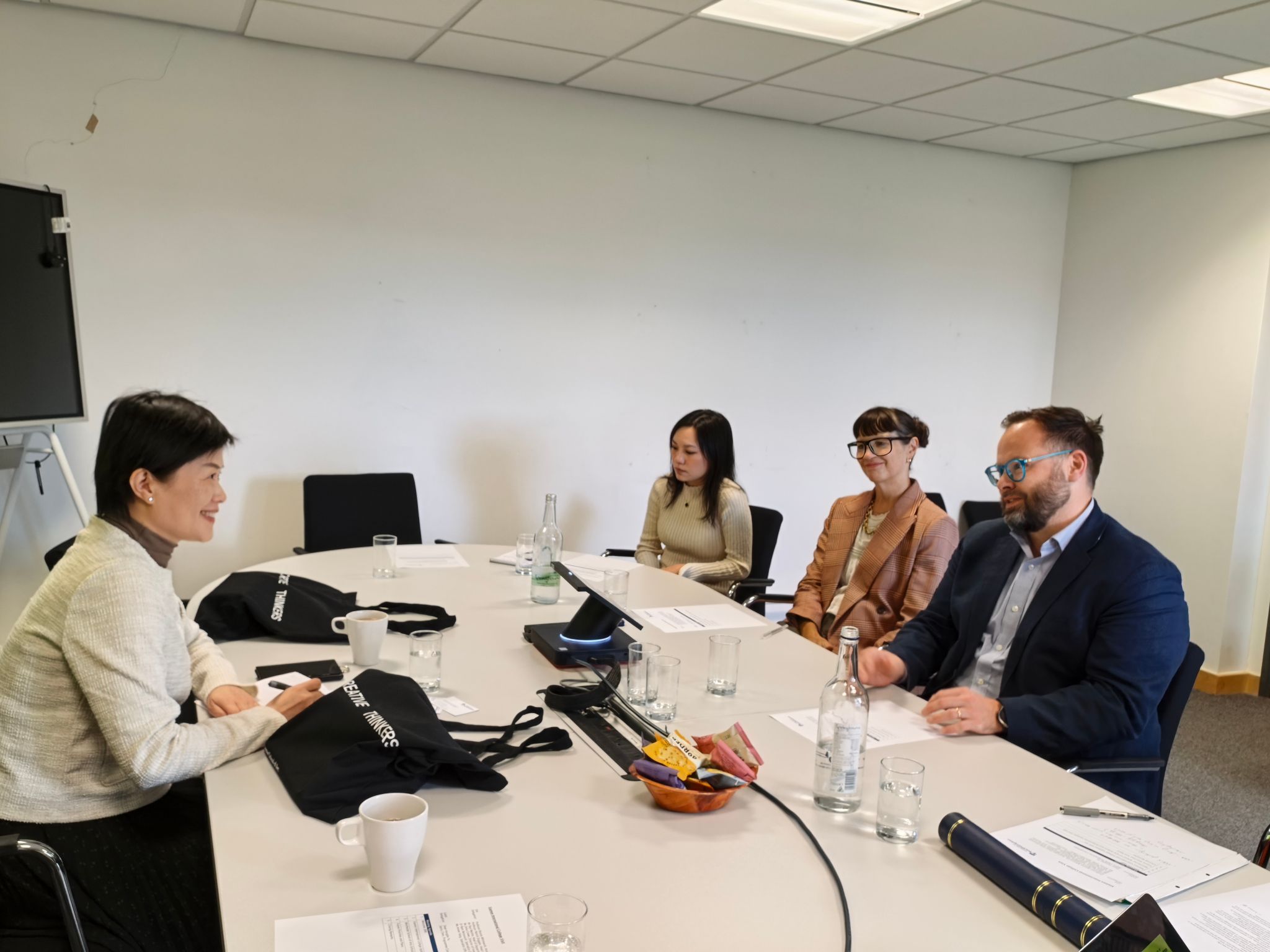 在温彻斯特校区,余院长一行还与该校人文艺术学部副部长Bryony Whitmarsh教授、温彻斯特艺术学院院长Patrick Duggen及服装面料系主任Paul Machie、国际办主任Delia Crowe等座谈,结合现有合作项目,探讨AI对艺术教育带来的挑战与应对策略,并就提升项目质量与学生培养水平达成一致意见。