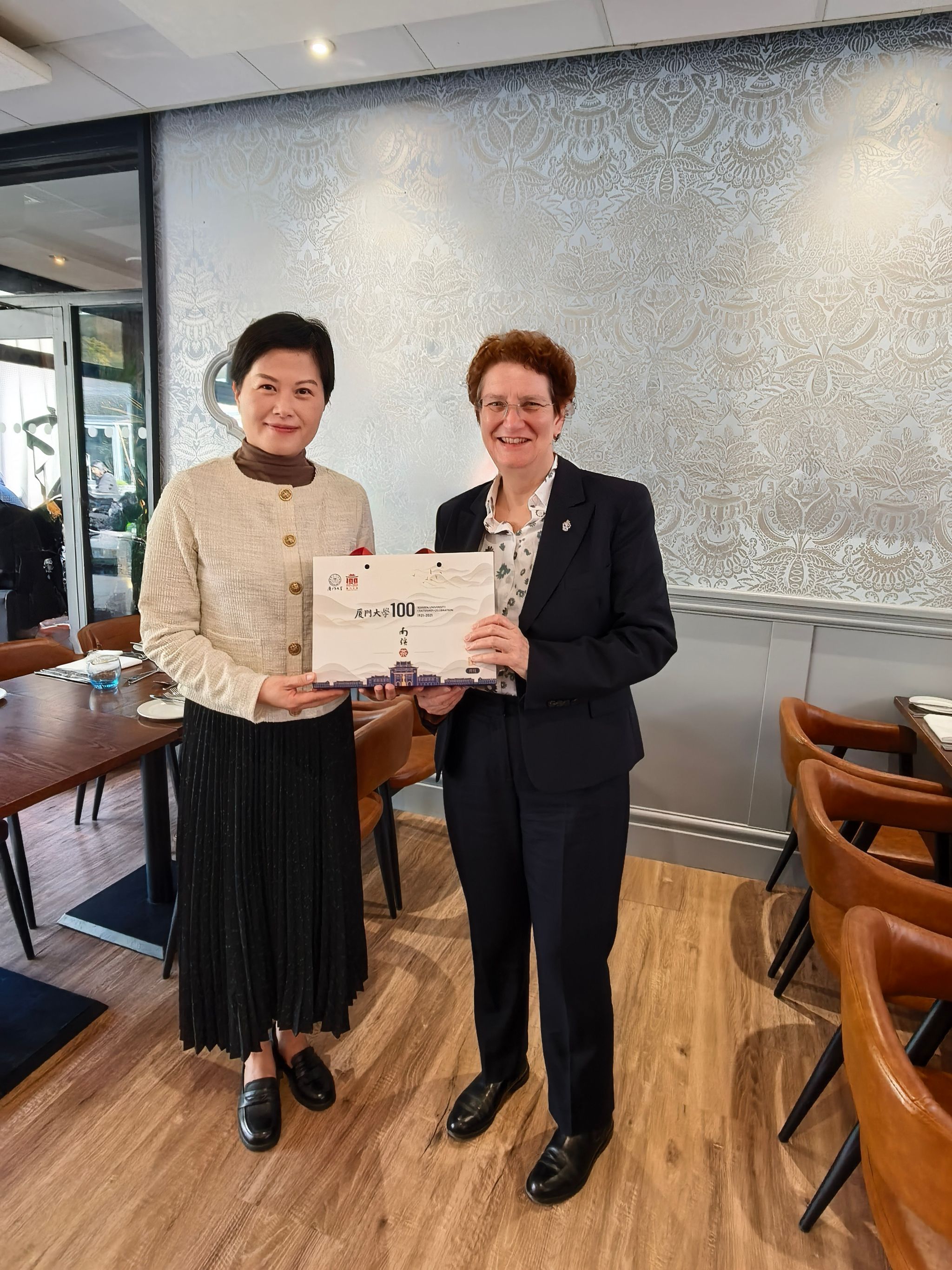 9月23日,余宏波院长一行抵达此次访问的最后一站——英国南安普顿大学,在Highfield主校区,与南安普顿大学副校长Jane Faulkingham教授、人文艺术学部及国际处相关负责人,以及厦门大学-南安普顿大学孔子学院中外方院长会面。双方回顾了长期友好的合作历程,并就持续深化未来合作达成广泛共识。余宏波院长向Jane Faulkingham副校长递交了20周年院庆邀请函。Jane Faulkingham副校长表示,作为国际学院长期合作伙伴,南安普顿大学将以院庆为契机,进一步加强双方在人才培养、学术研究与文化交流等领域的合作。