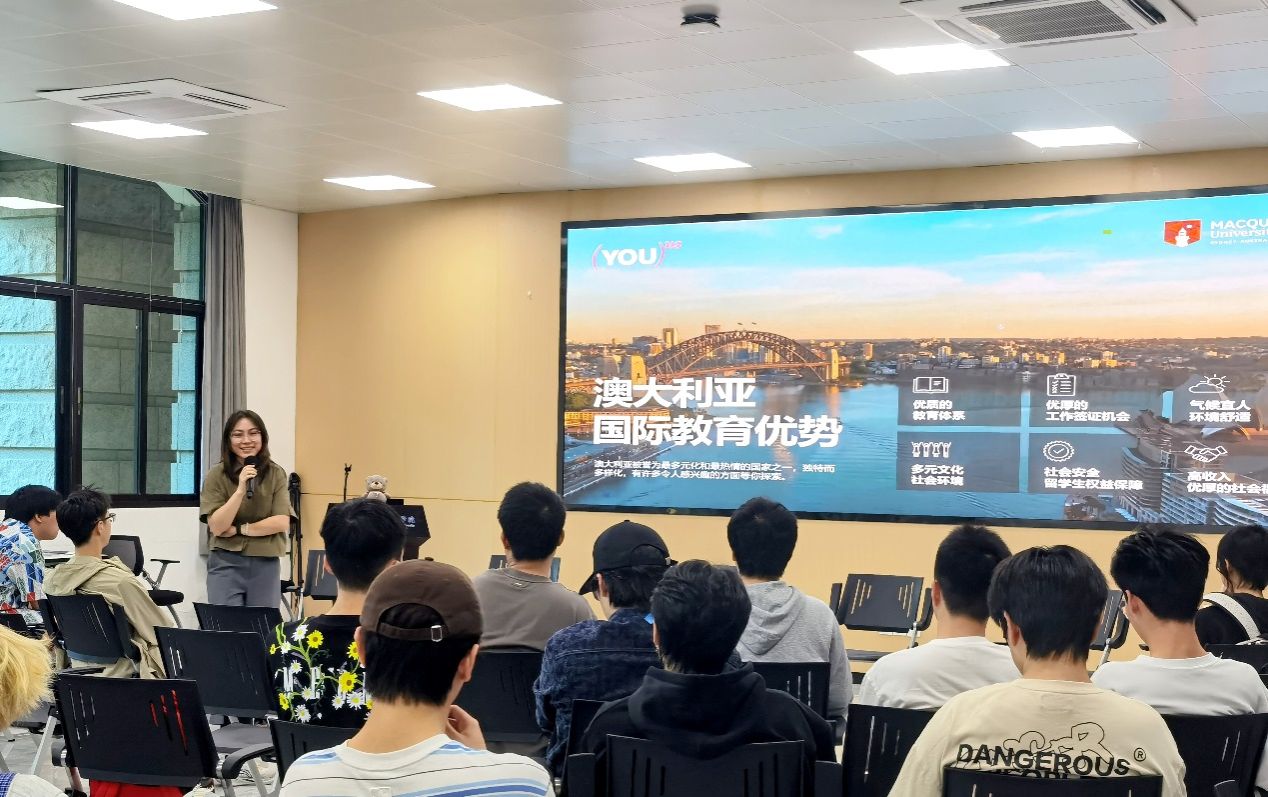 11月6日下午,澳大利亚麦考瑞大学未来学生事务部中国院校事务主管蒋婷婷老师到访厦门大学国际学院,在主楼4号楼一楼101会议室举办留学宣讲会。该活动重点面向我院国际本科(2+2)项目商科专业以及金融硕士(1+1.5)项目学生。