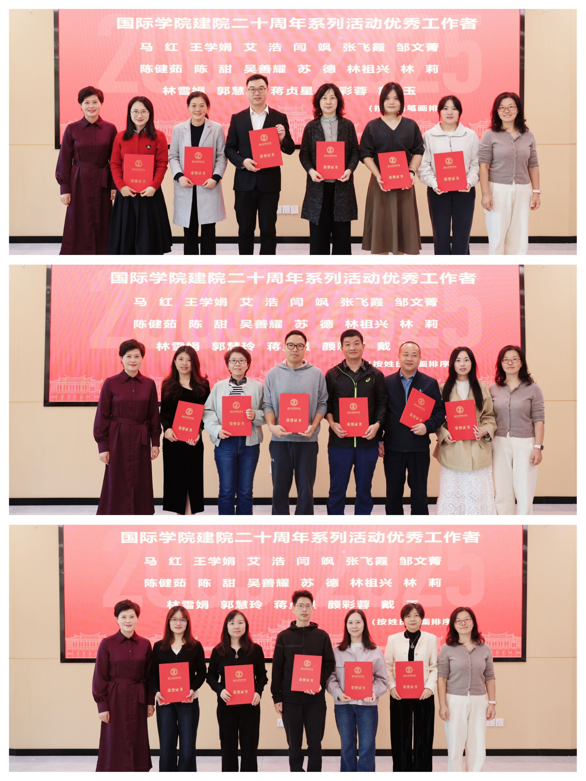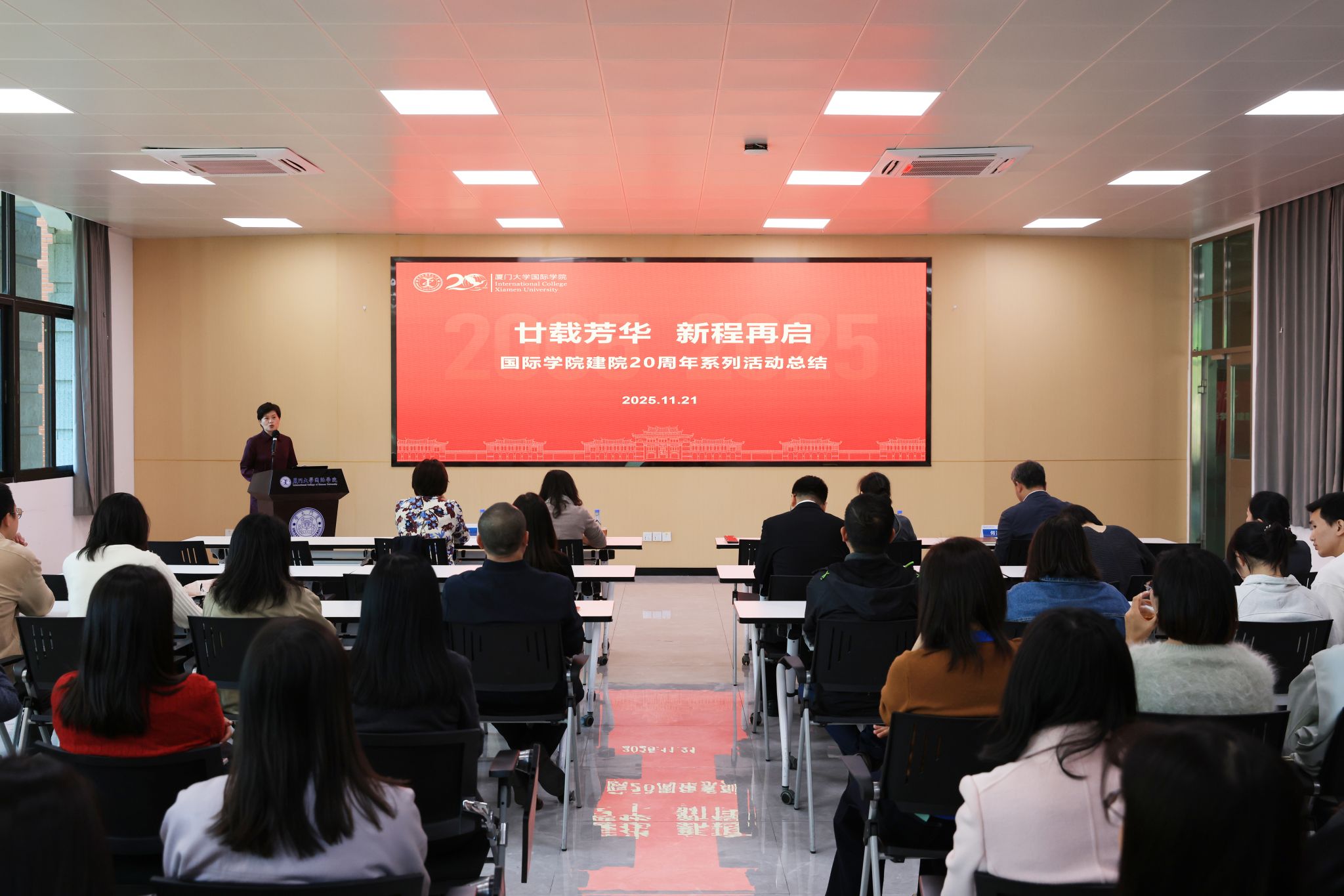 11月21日中午,国际学院在漳州校区主楼4号楼101会议室召开建院20周年系列活动总结表彰大会。学院党政领导班子及全体教职工齐聚一堂,全面总结建院系列活动成果,表彰先进典型,共绘学院高质量发展新蓝图。会议由学院副院长张晓云主持。