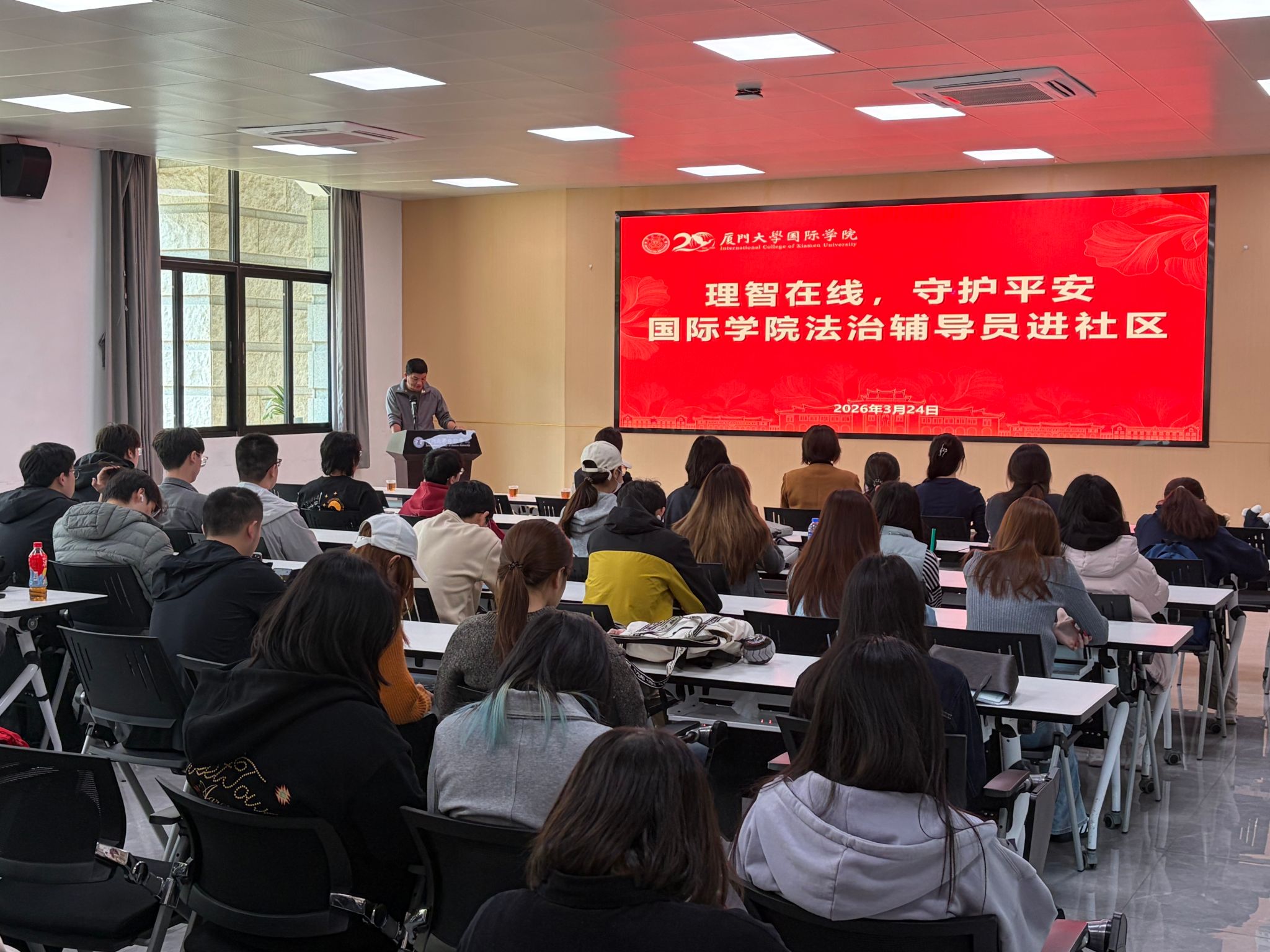 此次活动系国际学院学工组策划的专项系列专题教育的首场活动。此前,国际学院学工组积极与分配到学院的法治辅导员联系对接,并召开专题研讨会就如何做好学生的安全教育,增强学生法治意识进行沟通交流,最终确定工作方案和计划。未来,学院将持续深化警校协作,常态化开展安全普法教育,把反诈防骗工作抓细抓实,全力守护学生平安健康成长,营造安全、稳定、和谐的育人环境。