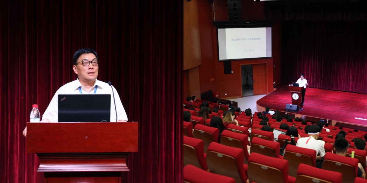 陶涛结合党史学习教育体会和自身经历,运用生动的故事及案例,让师生们不仅了解了生命科学、病毒学等基本知识,还通过详实的数据对比分析,展示了我国在抗击新冠肺炎疫情中表现出的强大领导力、团结力及社会主义制度的优越性。他指出,改革开放以来,党和国家高度重视科技创新,持续加大科研投入,培养和引进了大批高水平专门人才,自2003年非典暴发以来,中国的生命科学研究有了长足的进步,科研条件和水平已居世界一流,他们的研究成果为人类最终战胜新冠肺炎疫情奠定了重要的基础。当前,我国在开展新冠病毒疫苗研究,疫苗种类、质量、产能及接种速度上都位居世界前列,可以说,我国是世界新冠肺炎疫情防控做得最好的国家,不仅尽快恢复了复工复产,2020年,我国还是世界上唯一一个实现经济正增长的国家,取得了脱贫攻坚的全面胜利,决胜全面建成小康社会。