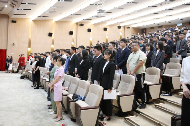 典礼开始前,全体师生一同观看了纪念视频,共同回忆了大学生活中的点点滴滴。一张张照片,一帧帧记忆,一句句老师们离别前的叮咛祝福,让全场洋溢着温馨的氛围。