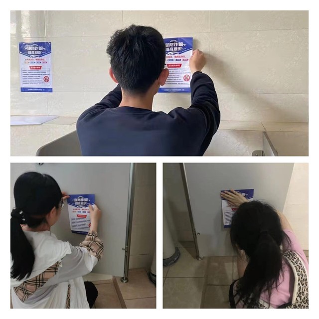 以“干”当先,在为师生办事中彰显“细心”。56-10日,辅导员、学生骨干及志愿者积极投身反诈骗宣传工作第一线,撸起袖子,迈开步子,将设计精美、知识点突出的宣传海报逐一分发、粘贴到师生工作、学习和生活的各个校园区域:从宿舍楼到教学楼,从教室到走廊,从走廊到洗手间,甚至细化到洗手间的每一个小隔间,都有他们张贴海报的身影。他们脚底有“泥水”,头顶有汗水,不辞劳苦深入基层,不厌其烦地通过“无声”地形式向学院师生讲解防诈骗知识,真正把学校的反诈骗宣传工作落到实处,让防诈骗意识进心入脑。