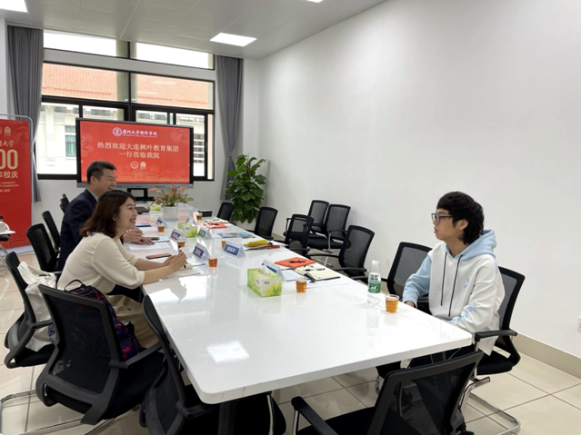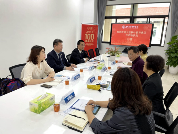 枫叶教育集团首席运营官兼市场总监曹晓峰先生对厦门大学迎来百年校庆表示祝贺,对国际学院的热情接待表示感谢。他介绍了枫叶教育集团的办学理念、教育体系引进与发展情况,表达了枫叶教育集团与我院拓展深入合作的良好愿景。任鸿鸽副校监和高霁阳总监做了“创中国标准,办世界学校”的主题报告,分别介绍了枫叶目前的整体版图和未来的发展展望,分享了枫叶世界学校课程及近几年毕业生去向等信息。座谈间隙,枫叶教育集团的领导们看望了目前在我院学习的枫叶毕业生。
