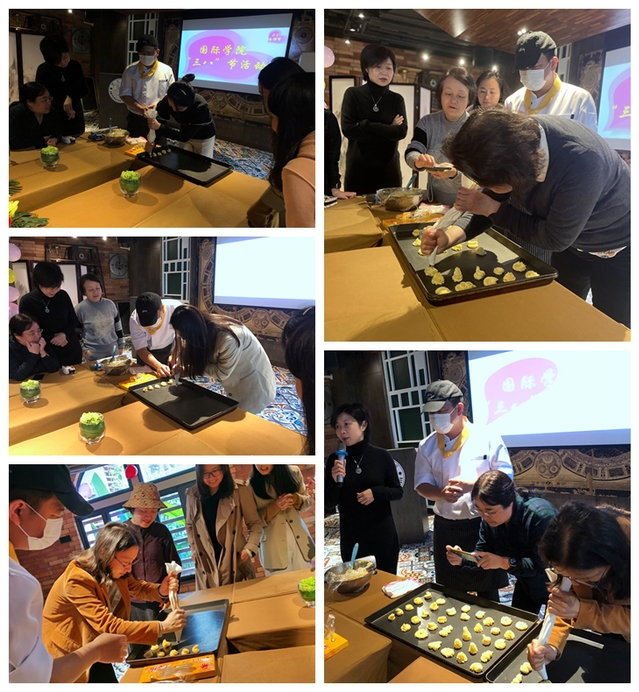 活动中,国际学院副院长黄冠华老师首先代表学院向全体女教职员工致以节日的问候。随后,学校国际交流中心梧桐楼烘焙主厨向老师们介绍了西式饼干的烘焙知识,详细讲解了黄油曲奇的制作流程和烘焙技巧,并现场进行演示让大家感受烘焙的乐趣。