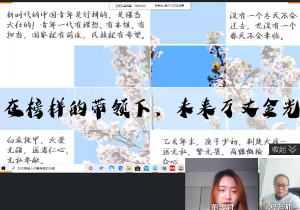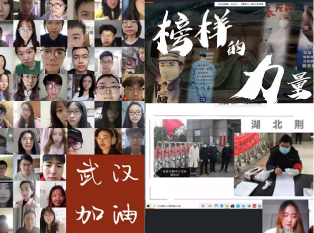除了同学们积极分享,参加班会的老师们也正确引导同学们感受中国制度的优越性。洪镔老师点赞为逆流而上医疗支援队的“中国勇气”,分享医用、生活物资驰援湖北的“中国团结”,表达全国齐心协力,抗击疫情的“中国决心”。在战“疫”中感受国家的力量、人民的真情,感知时代青年爱国爱党的美丽情怀和功成有我的责任担当。
