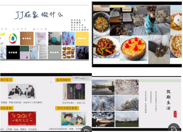 2018级会计班分享了疫情期间丰富的居家生活:刘娇娇分享了自己在安永和腾讯的线上实习体验,鼓励大家在实习中把知识学以致用;吕佳涵同学推荐大家在条件允许的情况下多出门锻炼、运动、登山,缓解疫情带来的焦虑的情绪,保持平和心态。除了生活分享,同学们也列出了推荐书单。大家通过分享,了解同龄人在同一时间不同地点正在从事的事情,感受生活多样魅力的同时可以做好自己的时间管理和自我管理,昂首阔步走向自律的高处。