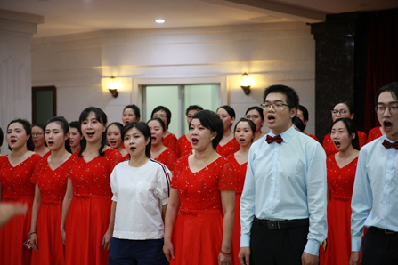 为了展现我院教师风采,提高教职工的凝聚力、向心力,丰富职工业余文化生活,早在几个月前接到合唱比赛通知开始,学院党政领导便高度重视,亲自报名并积极参加排练;学院工会认真组织、精心安排每次排练;参加合唱的近60名老师,虽然日常工作繁忙,但是每到联排日,都能积极放下手中各种事,全身心投入排练中。在专业老师的精心指导和排练下,经过大家无数次的沟通交流、练习配合,比赛当天,在学院办公室、工会精心组织和后勤保障下,合唱团在赛场舞台上大放异彩,以悠扬的歌声、磅礴的气势展现了我院热爱祖国、团结奋进、朝气蓬勃、砥砺前行的精神风貌,体现了我院教职工齐心协力、甘于奉献、勇于担当的精神。