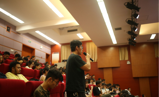 讲座最后设置了现场问答环节,针对同学们提出的问题,王燊老师和洪阳洲同学做出了热情耐心的解答,现场气氛十分活跃。