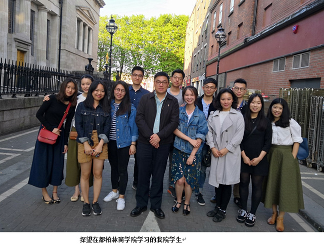 最后,代表团乘机前往爱尔兰首都都柏林,对我院中外合作办学伙伴方都柏林商学院进行访问。都柏林商学院执行院长AndrewConlan-Trant对代表团一行表示欢迎并介绍了都柏林商学院的近况,并与陶院长就学生交流、课程质量、师资培训等问题进行了深入讨论。会后,Andrew Conlan-Trant院长带领代表团一行参观了都柏林商学院。陶院长对对方先进的教学理念和教学设施表示赞赏,并未来能够有更多的学生和老师受益于双方合作的中外合作办学项目,实现合作双方双赢的结果。