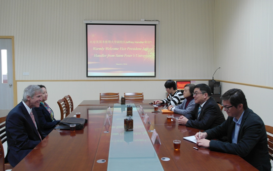 3月6日,美国圣彼得大学(Saint Peter’s University)副校长Jeffrey Handler先生一行来访国际学院,与我院深入洽谈国际项目合作事宜。