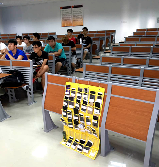 课堂上,老师正在认真板书,可是一回头,只见一排排低头玩手机的同学们,或聊微信QQ、或刷微博追剧打游戏……面对课堂上的这些“低头族”、“手机控”,老师们是否经常感到束手无策呢?但是在我院林颖婷老师的课堂上,同学们的手机则安静地躺在教室一旁的收纳袋里。大家纷纷认真听课,除了时不时低头做笔记,大多数同学变成了名副其实的“抬头族”。