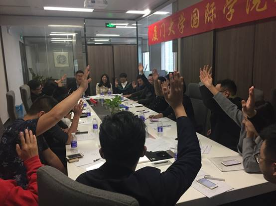 会议由校友会秘书长2007级校友方圆同学主持,校友会会长俞培众先生介绍了国际学院校友会近期的发展运作情况,并指出为了更好地发展厦门大学国际学院校友会,充分发挥校友会的沟通和交流作用,需要广大校友认识到办好校友会的重要性,增强校友会的向心力、凝聚力,希望校友会成员能把个人工作与团队目标结合起来,乐于奉献,勇于担责,齐心协力共创校友会工作的新局面。