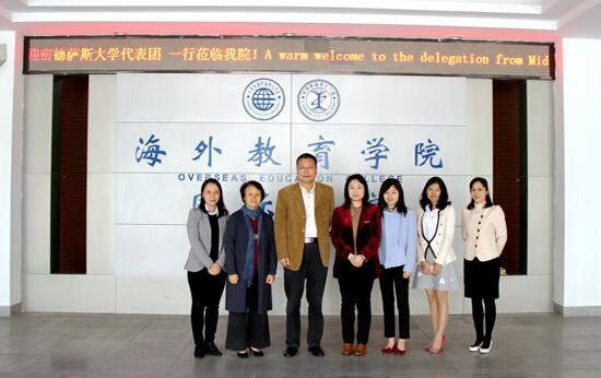 2016年11月30日上午,英国密德萨斯大学中国办事处主任Christine Wang女士及办事处代表雷蕾老师一行来访国际学院。双方就未来可能合作的1+2、2+2项目及输送英国学生来华学习等计划进行了商谈并举行宣讲会。