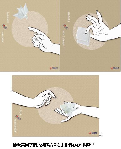 其中,2014级王弋楚同学的系列作品《拼成我所想喝入我最棒》夺得大广赛全国总评审平面广告类三等奖及省级三等奖;2014级张岳同学的系列作品《艺术写生考察就跟花儿走》夺得省级二等奖;2014级杨晓棠同学的系列作品《以手相创心心相印》夺得省级三等奖;2014级杨晓棠、张岳同学的系列作品《原本你以为你只是买到了一包纸巾》夺得省级优秀奖;2014级李静茹同学的系列作品《洁婷透气》夺得省级优秀奖;2014级许秋庆同学的系列作品《洁婷让你健康轻松优雅做自己》夺得省级优秀奖。