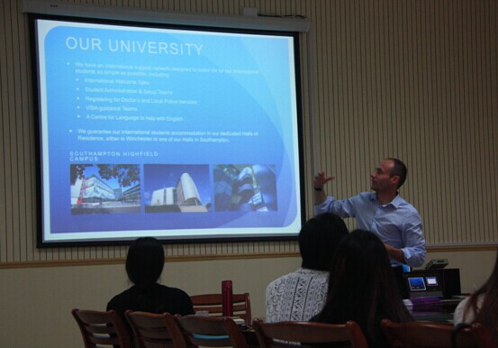 随后,面试老师与我院艺术项目大一的学生见面座谈。Olivier老师向同学们详细地介绍了南安普顿大学温彻斯特艺术学院的课程设置、师资配备、硬件设施等各方面的情况。同学们也就自己感兴趣的问题,比如住宿环境、奖学金、毕业展等问题与老师积极互动、交流。