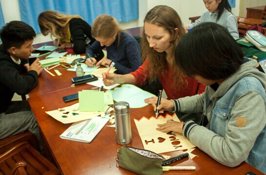 之后,留学生们在中国“小老师”一对一的帮助下制作一张以 “美丽厦门”为主题的贺卡,每张贺卡上都有“我爱厦门”的字样。留学生们发挥自己的想象力,认真的绘制着“我爱厦门”四个字,并精心画上了他们认为能代表厦门的美景。经过了一晚的努力,贺卡上有了高耸入云的气象台,蜿蜒的海沧大桥,还有厦门烟花夜景的点缀。