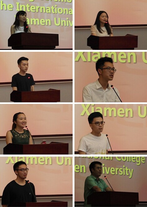 最后,开学典礼在阵阵掌声中圆满结束。意犹未尽的新生们继续与校友进行交流,收获大学生活的宝贵经验。厦门大学国际学院全体2014级新生将从这里出发,努力前行,创造一个更加美好的未来!