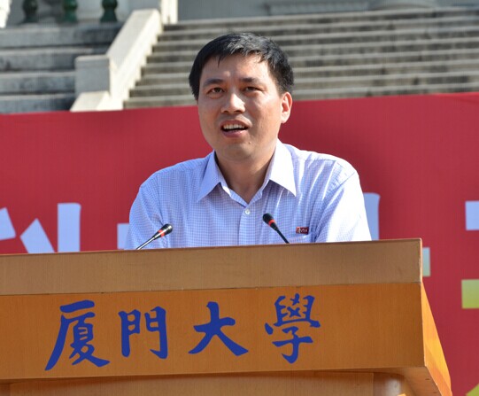 老生代表、管理学院2012级本科生柴干向全体新生们说,希望大家能够尽快适应大学的学习生活,做一个独立、自由的人,学会独立思考,勇于尝试。树立坚定的理想信念,有高远的精神追求,努力传承厦大精神。