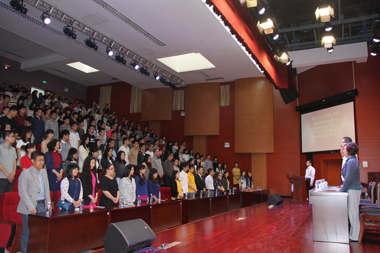 最后,在主席台上就坐的学校及学院领导为今年这批即将离开厦门大学赴国外留学的学生颁发结业证书并合影留念,全场响起持续而热烈的掌声。