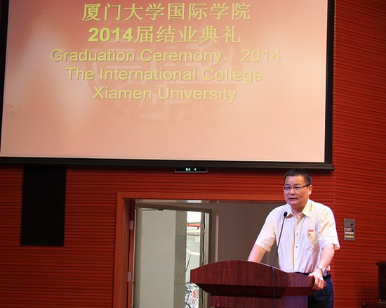4月29日上午,翔安校区坤銮楼多功能报告厅内歌声嘹亮,掌声阵阵,国际学院2014届学生结业典礼在这里隆重举行。厦门大学校长助理李初环、国际学院院长郑通涛、党委书记陈志伟、党委副书记伍伟平、办公室主任黄冠华等学校及学院领导出席结业典礼。参加典礼的还有中国留学服务中心留学组,英国合作大学各代表,学院各部门负责人和2014届结业学生及家长。典礼由国际学院副院长吕子玄主持。