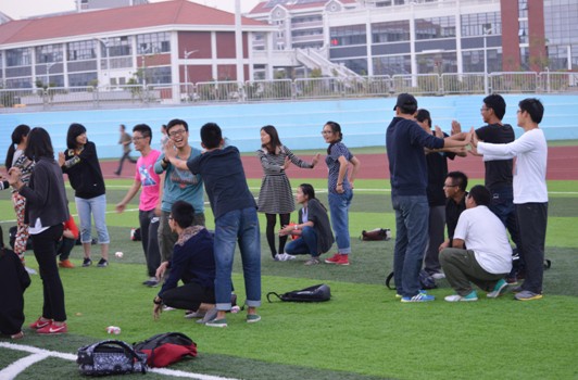 国际学院团总支组织部还特别为都柏林项目新生组织了一场以班级为单位的素质拓展活动。活动以游戏的方式进行,“大风吹,小风吹”、“萝卜蹲”、“猜成语”、“松鼠与大树”等一系列游戏,让同学们从陌生走向熟悉,逐渐融入到集体中。素拓为13级的同学们提供了一个相互了解的平台,促进了同学们的交流,也增进了彼此的友谊。这无疑为国际学院的凝聚力添上一笔重彩。