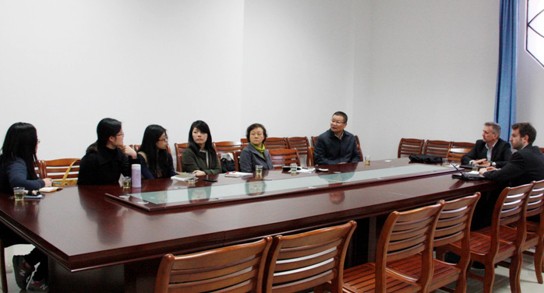 郑通涛院长认真听取Chris及Thom的介绍,并对语言中心的改革思路表示肯定。他指出目前厦门大学国际学院与英国南安普顿大学的合作仅在艺术设计本科及教育硕士两个项目上,双方的合作范围还可以进一步扩大。合作设置长期的语言课程有利于提高学生英语能力并使学生顺利对接国外专业学习。