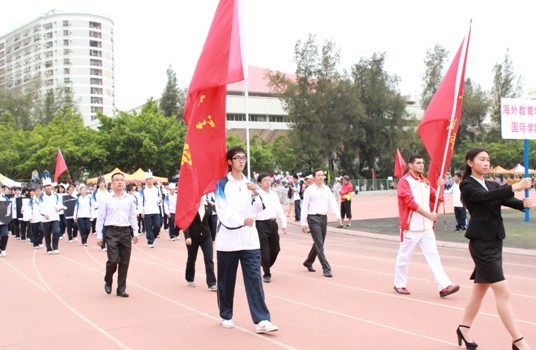 “国际精英,敢闯敢拼。海外不败,we can fly!”在八点举行的开幕式中,我院40多名教职员工身着白色T恤,飒爽英姿,精神饱满地带领70多名学生方阵入场。同学们身着蓝白主色的运动服,迈着整齐的步伐踏上田径场,以独树一帜的动态国际象棋阵形和嘹亮的口号展现了国际学院学生高昂的精神风貌。