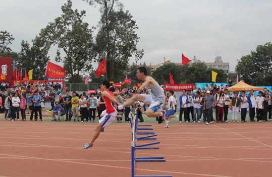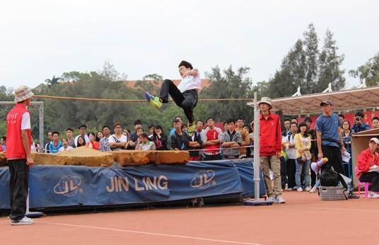 上午9点,女子100米、男子跳高、男子跳远三个项目同时进行。陈黎明同学经历2个多小时的拉锯战后,以1米63的成绩获得男子跳高第七名,为我院打下了响亮的第一炮。