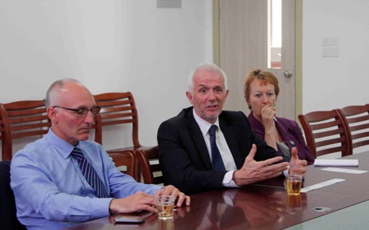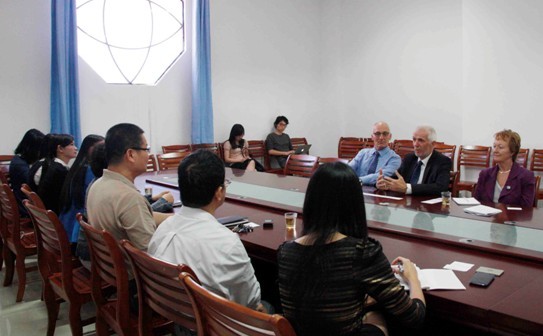 这是英国南安普顿大学副校长一行首次到厦门大学的翔安校区访问,Wheeler校长首先表示这是一次非常及时的访问,让他了解到了学院的新发展。郑通涛院长向他简单介绍了目前学院和学校的基本情况。他重点介绍了学院目前搬迁到翔安校区后的软硬件优势,与各合作院校的良好联系与互动,以及学院目前重点推进的国际教育项目。Jo Doyle女士和Mark Cranshaw先生重点询问了学院目前开展的国际合作项目的具体情况以及开展教师互访交流项目的情况。