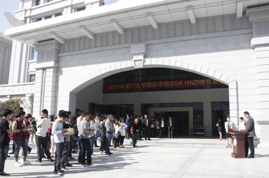 10月26日,国际学院在厦门大学翔安校区主楼2号楼一楼大厅举办“2013年SQA HND项目高校交流会”,来自英国的23所国外大学到会参展。中国教育部留学服务中心SQA HND项目留学组也到场为学生及家长提供出国方面的咨询。
