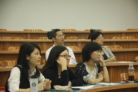 参赛教师的比赛顺序是根据抽签决定的,对外汉语组第一个上台比赛的是新入职的会计学博士洪镔老师,他就“会计学基础”这一题目进行了20分钟的讲授。紧接着,邱晓蕾老师讲述的是经贸汉语课程里的“质量生命周期理论”,她在电子讲义里动画显示周期理论等内容,得到了评委及在座教师的认可。随着比赛的进行,对外汉语组的青年教师们逐一登台亮相,形成台上台下互动的场面,赛场不时响起欢笑和掌声;国际学院外语组的比赛在201房间举行,担任国际学院外语课程的老师纷纷拿出自己在教学过程中的绝活。第一个登台亮相的李莉老师就给全体评委一大惊喜,娴熟的教学技巧和标准流利的英语环绕整个教室。徐文艳老师讲的雅思考试写作技巧,显示了她丰富的教学和实践经验在短短的20分钟里,她向评委们展示了如何用简单的词汇写出一篇优秀的雅思作文。第三组是国际学院专业组的青年教师,国际学院专业方向较多,教师教授的课程涉及酒店管理、艺术设计、系统工程、金融理论等各个方面。本组郑通涛院长担任评委,在比赛过程中,郑院长逐一对青年教师的教学技能展示进行点评,他要求青年教师在今后的教学过程中,要仔细理解所传授的课程,注重细节,认真备课,深挖知识点,用生动的案例调动学生的兴趣并使学生始终保持对课程的兴趣。