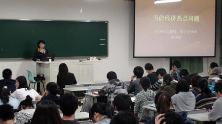 赖小琼教授主要针对欧洲主权债务危机、通货膨胀问题、中国房地产市场的泡沫化以及国民收入分配四个主题,结合翔实准确的官方数据,向同学们深入浅出地分析评价了当前的经济热点问题。讲座中既有系统权威的理论知识帮助同学们在实际问题中深入理解课堂上学到的经济理论,也有赖教授自己精辟独到的个人见解,让同学们收获了很多课堂之外的难能可贵的名师观点。参加讲座的同学无不表示受益良多。最后,赖教授结合自己多年的学术研究,向同学们介绍阐释了自己对中国转变经济增长方式的看法和理解,也让同学们对中国经济的未来发展之路多了一种了解和期待。