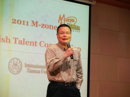 12月23日,由国际学院主办、中国移动通信联办的2011动感地带杯“青春飞跃重洋”英语能力大赛,在漳州校区主楼一楼报告厅圆满落下帷幕。国际学院院长郑通涛,副院长吕子玄、傅万里出席了大赛现场。来自英国的Robin Mitchell,来自美国的Philip Williams,以及来自加拿大的Adam Moran三位国际学院外教担任本次大赛评委,并为获奖选手颁奖。