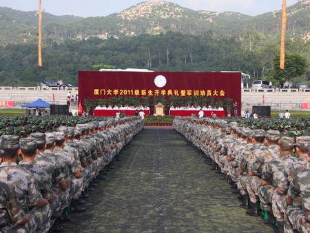 9月16日上午,我校2011级本科生开学典礼在漳州校区隆重举行。校长朱崇实在致辞上希望新生们在校期间自觉锤炼自己,了解把握自身潜能,提高自主学习能力,努力锻炼身体,以成年人的标准要求自己,学会独立、学会融入集体,热心公益。