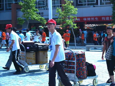 除了校区为方便新生报到而准备的新生报到专车专船外,为方便新生搬运行李,学院还特别准备了托运行李的拖车,以方便同学入住。在学院领导的指导下,迎新工作圆满完成。09级会计专业 黄�岳
