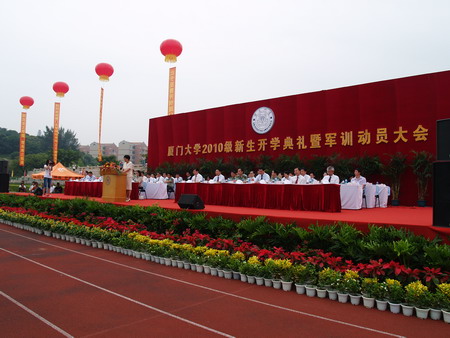 9月17日上午,我校在漳州校区田径场隆重举行2010级本科生开学典礼。校长朱崇实在典礼上希望新生们尽快完成从未成年人到成年人的转变,主动承担责任、学会独立、学会自律、学会包容。