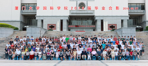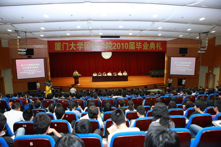 2010年6月8日上午8:30至11:30,我院在漳州校区主楼二楼大报告厅隆重举行2010届学生毕业典礼暨国外大学录取通知书签发仪式,为今年145名毕业生颁发结业证书,教育部中国留学服务中心英国高等教育项目负责人杨大轴,厦门大学漳州校区党工委书记、管委会主任王巧萍,漳州校区党工委副书记梁卫中,我院院长郑通涛、副院长黄建军、耿虎,厦门大学附属实验中学校长姚跃林,以及来自英国、美国、澳大利亚11所合作大学的代表们出席了典礼,典礼由我院党总支书记曾坤瑜主持。