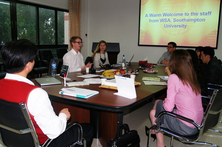 4月12日,英国南安普顿大学艺术学院时装设计系副主任Cecilia Langemar、视觉艺术系副主任Tim Metcalf、国际招生助理官员Sarah Travis访问国际学院,对国际学院08级艺术设计项目的学生进行英语考试和专业面试。