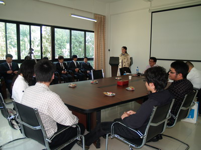 在国际学院会议室,08级、09级中日项目的学生用日语向小谷内郁宏一行进行自我介绍,汇报学习成果。汇报完毕,日方老师与学生亲切的交流,询问同学们的学习、家庭和生活情况。日方赞扬了学生的学习成果并鼓励他们再接再厉,争取更好的成绩。
