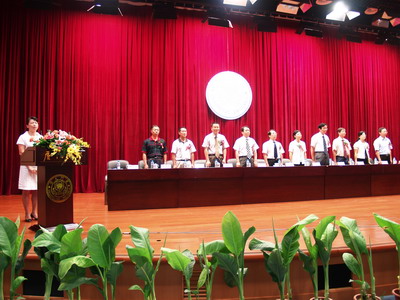 随后,与会领导为09届学生颁发结业证书,并合影留念。一张张年轻的面孔上写着兴奋与喜悦,灿烂的笑容定格为最美丽的画面。结业典礼在厦大校歌中落下帷幕。