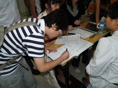 典礼结束后来自英国的9所合作院校的代表们为国际学院06级HND预本硕连读项目的毕业生现场签发录取通知书,解答关于出国留学的各项问题。来签发录取通知书的英国大学有赫尔大学、牛津布鲁克斯大学、布拉德福德大学、伯明翰城市大学、伦敦城市大学、密德萨斯大学、桑德兰大学、西英格兰大学和朴茨茅斯大学。