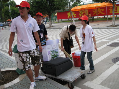 为做好迎新工作,国际学院专门选拔了一批志愿者。在三天的迎新工作中,他们忙碌的身影穿梭于行李点和若谷园区之间以及宿舍楼内外,尽管大汗淋漓,仍然毫无怨言。14日,一名正在搬运行李已经满头大汗的志愿者说:“我没有报名,今天一早就跑过来帮忙了。”